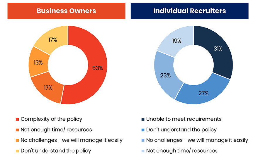 For both recruiters and recruitment agency owners, the complexity of these new policies was a primary concern. When drilling down further into the two classes of respondents, we saw: